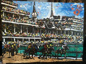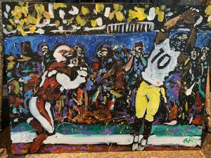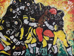 The display was such a success among the students that word began to travel around the community, which resulted in performances outside of the classroom. George has since moved on to perform for hundreds of fundraising organizations, corporate events, and community affairs, bringing his Pittsburgh speed painting to life through a wide variety of images including rock stars, sports figures, portraits of honored guests, images of company buildings, and event logos and themes.